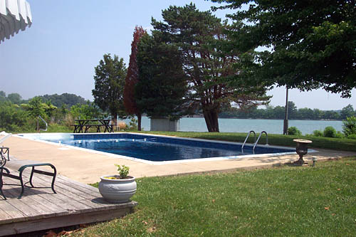 The 18'0" x 36'0" newly relined pool sits at the point of the property so our guests can be in the pool and watch the water at the same time.(All recreational activities involving the pool or the creek are at your own risk, a parent or responsible adult must be present at all times).